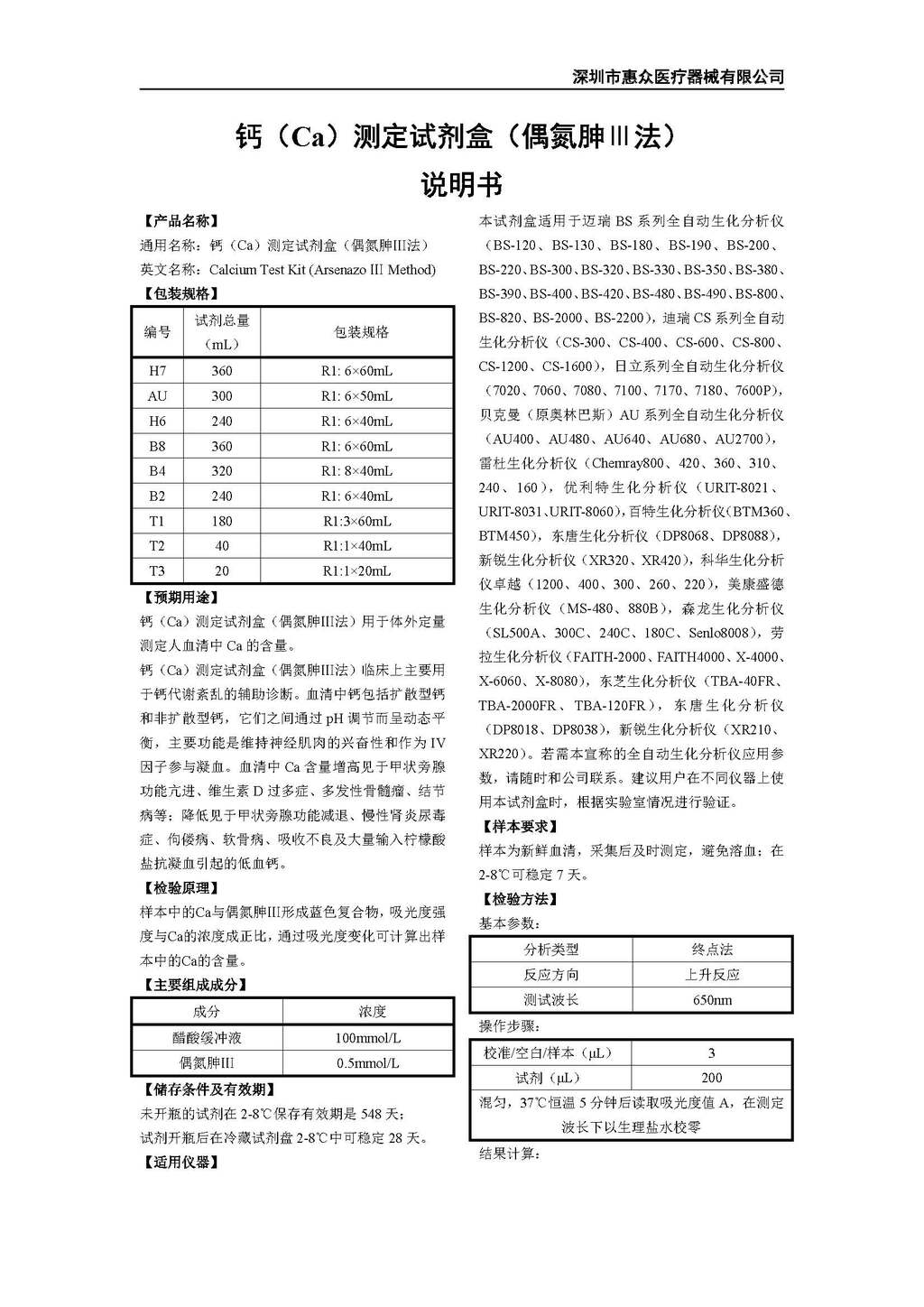 • 鈣(Ca)測定試劑盒(偶氮胂Ⅲ法)