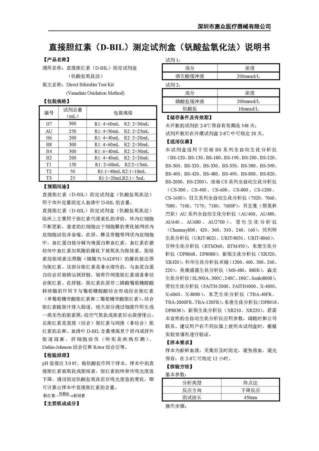 • 直接膽紅素(D-BIL)測定試劑盒(釩酸鹽氧化法)