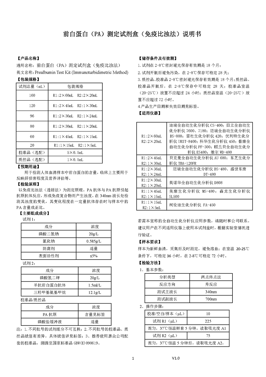 • 前白蛋白(PA)測定試劑盒(免疫比濁法)